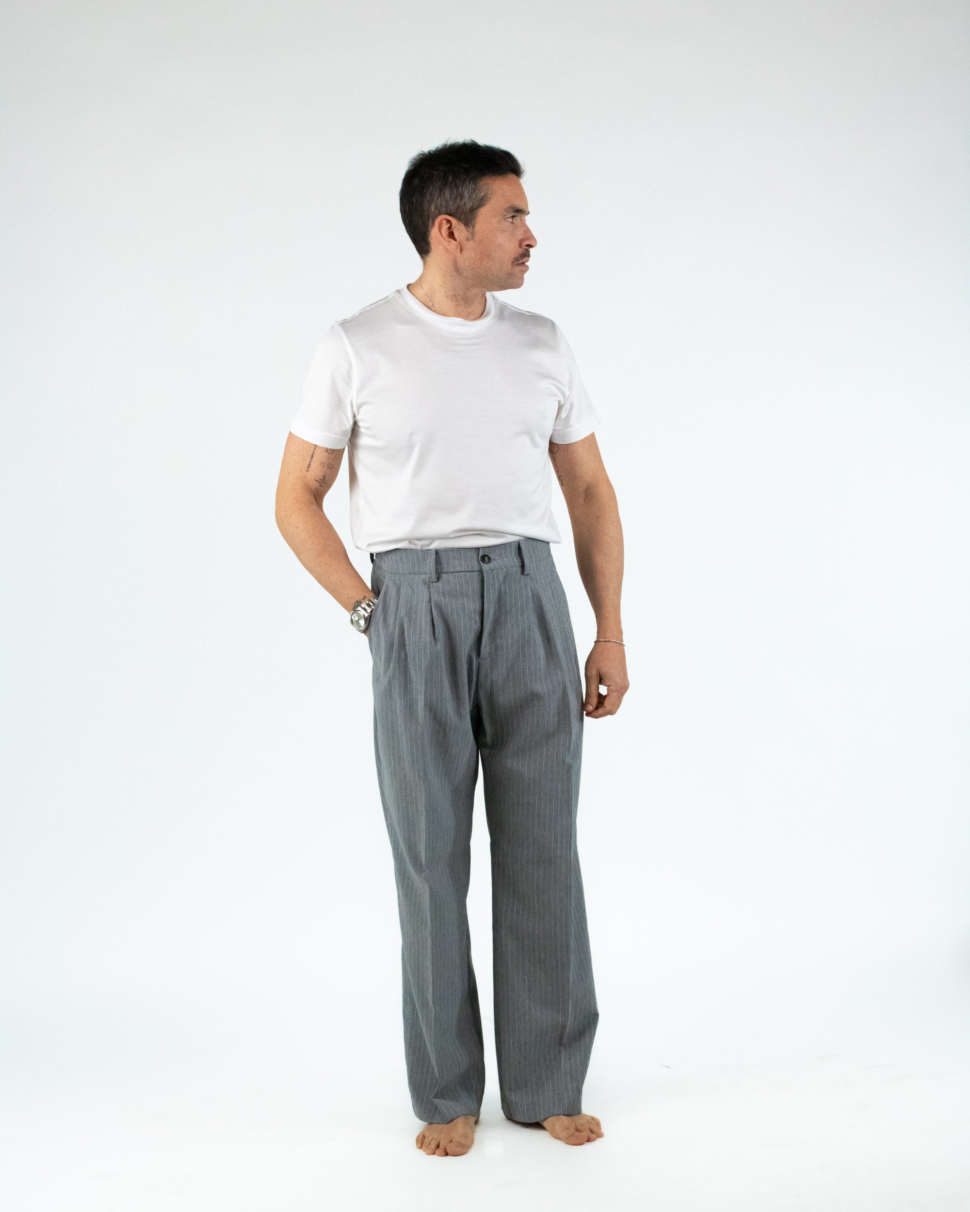 PANTALONE VITA ALTA GESSATO GRIGIO