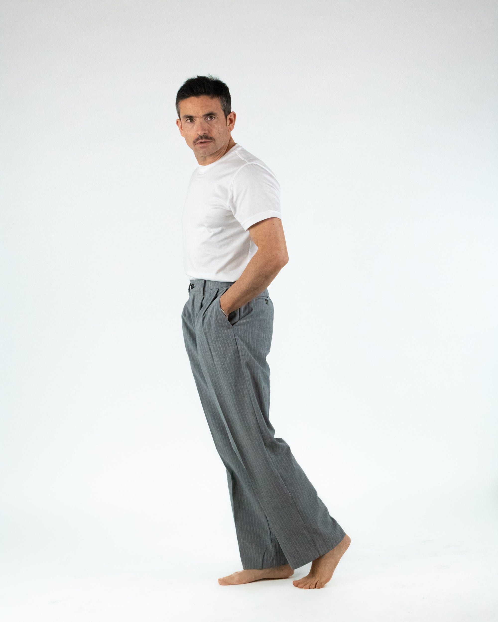 PANTALONE GAMBA LARGA GESSATO GRIGIO