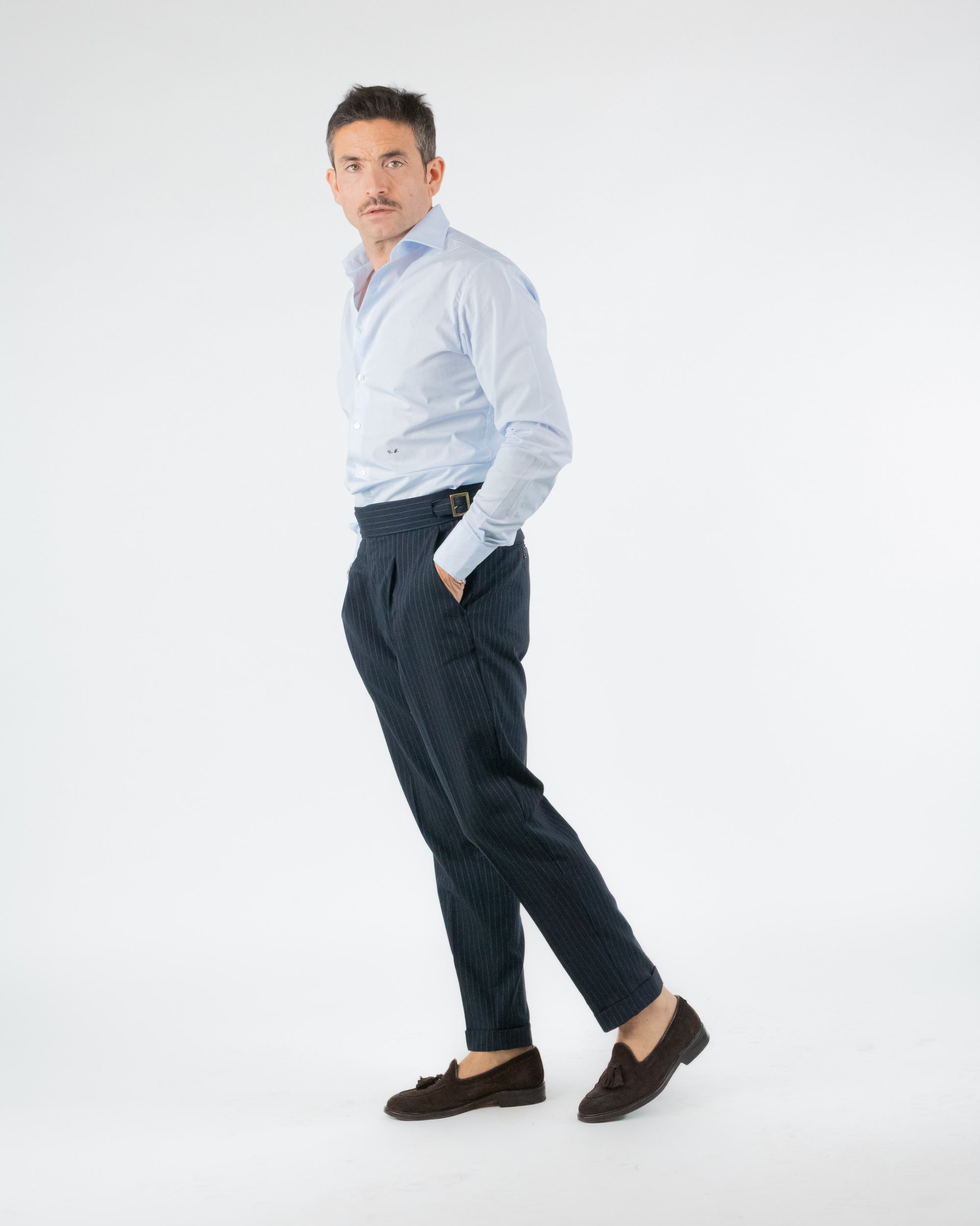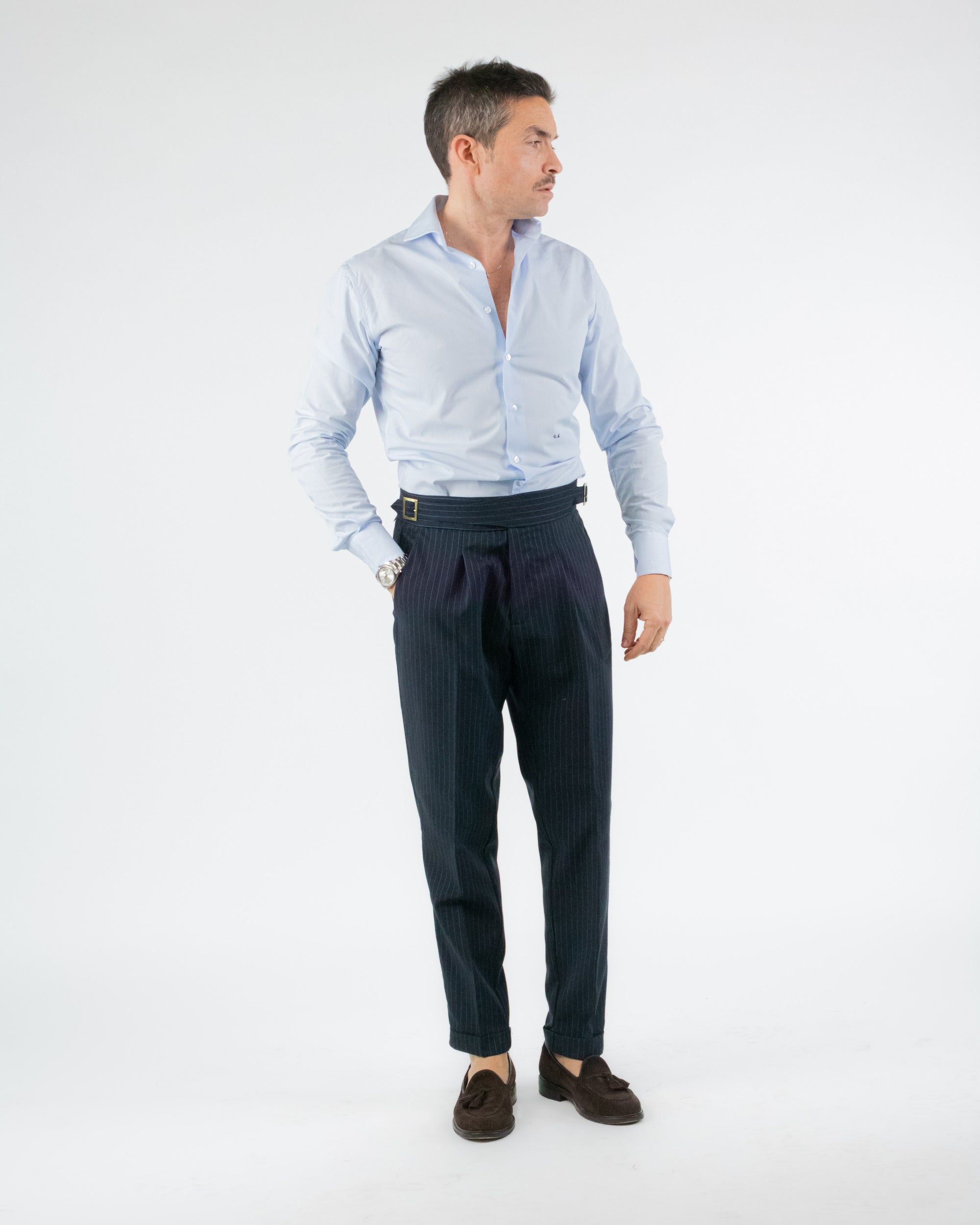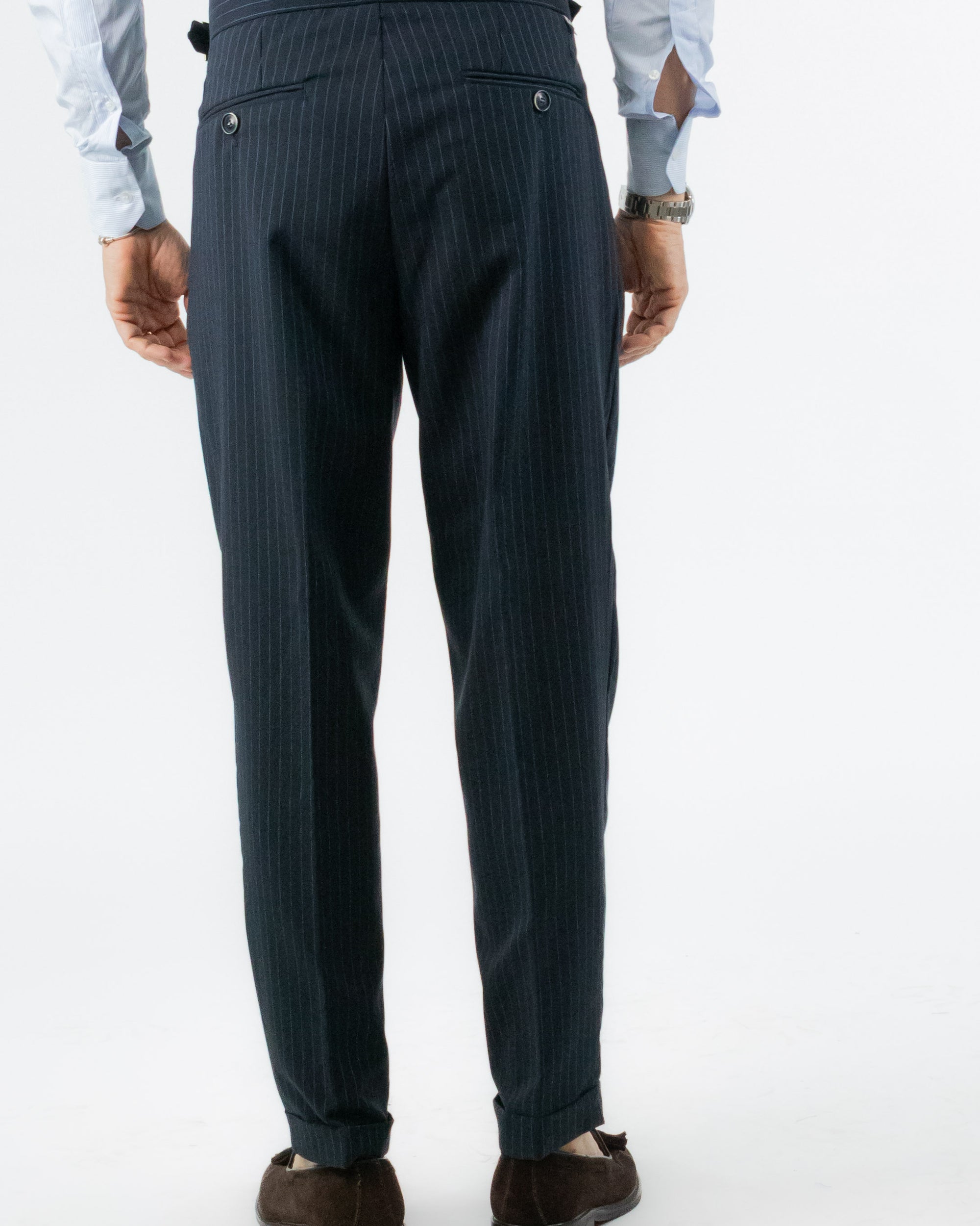 PANTALONE VITA ALTA GESSATO BLU
